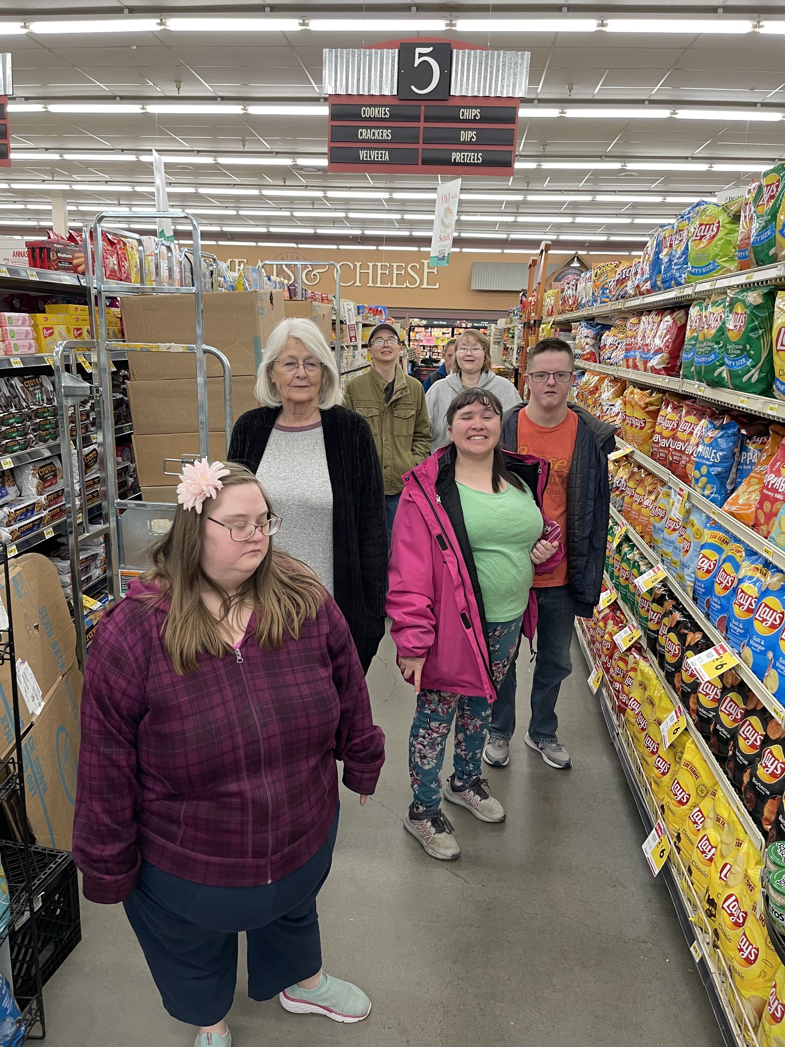 DDA staff member taking clients to a grocery store.