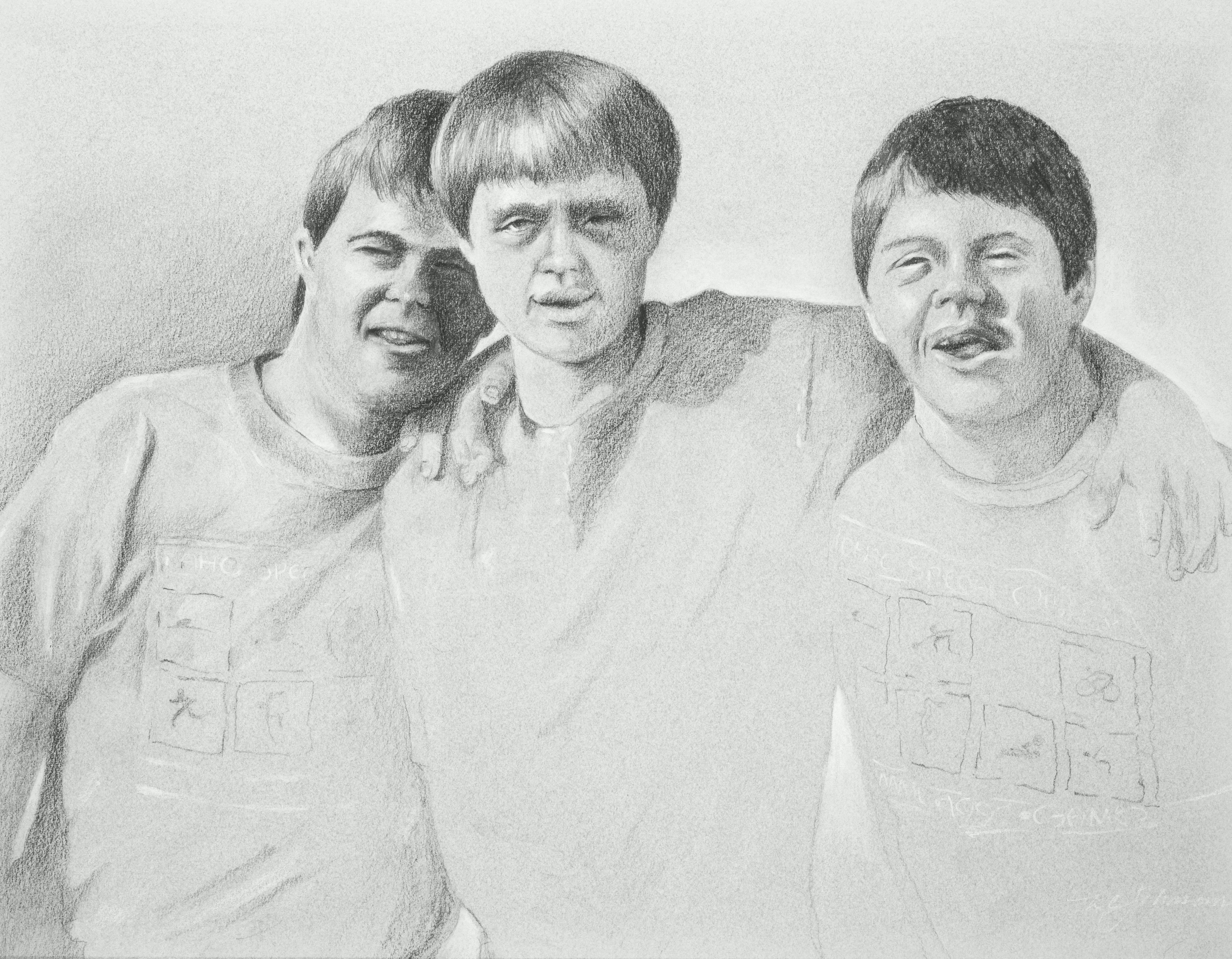 A local artist's drawing of Patrick and two friends in high school.